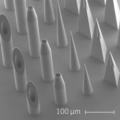 Beyond UpNano’s advancements, 2 Photon Polymerization (2PP) is unlocking a host of new possibilities in the medical field. Researchers at the University of Birmingham and the University of Southern Queensland have demonstrated the potential of 2PP in developing polymeric microneedles for drug delivery and biomarker monitoring. By fine-tuning factors such as laser power, print speed, and slicing distances, they created microneedles with side channels that allow for precise drug administration and health monitoring through the skin. In tests conducted on pig cadavers, shorter microneedles (150µm) withstood higher loads and successfully penetrated the skin without causing cytotoxicity or inflammation, indicating strong potential for safe and effective human applications.