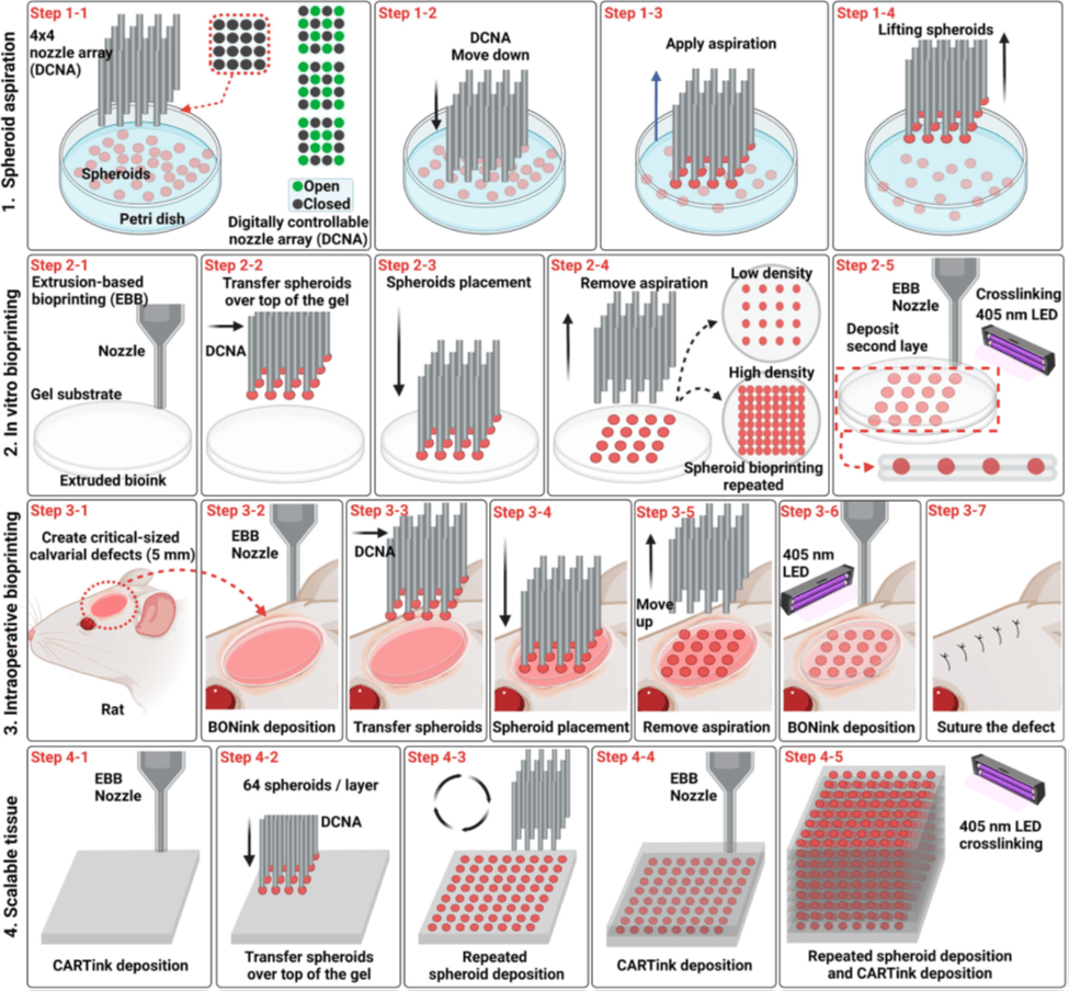 The system’s DCNA allows simultaneous handling of multiple spheroids, positioning them with spatial control. This innovation improves spheroid-based bioprinting from a labor-intensive, one-at-a-time process into a high-throughput solution.