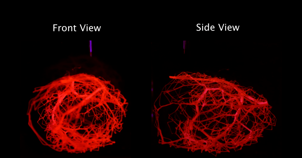 Above is the aforementioned 500-vessel interconnected synthetic vascular network fabricated within a bi-ventricle structure from figure 3 in the paper.