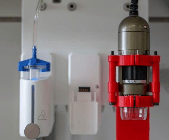 The compact design of the monitoring platform enables mounting it on a 3D bioprinter printhead next to the bio-ink extrusion printhead. Source: MIT.